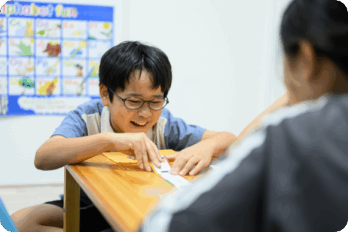 外国人講師の指導で「話す」「聞く」はもちろん、「読む」「書く」もバランス良く取り入れます。『楽しい→英語が好き!→英語が得意になる』の英語力上昇スパイラルをおこす充実したレッスン内容です。
