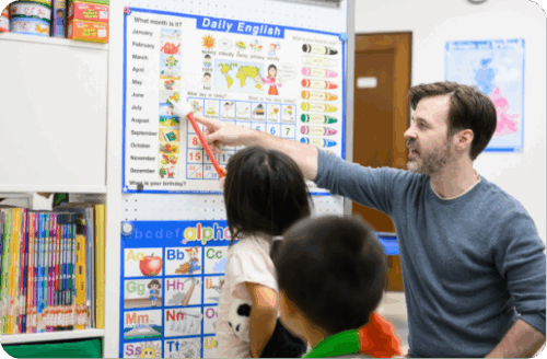 外国人講師による発音を正しく聞き取る耳を作れるのがこの時期。ゲームや歌、楽しいアクティビティを通して英語を感覚的に習得していきます。幼児期に生の英語に触れる機会が多ければ多いほど、将来の英語力が強くなることは間違いありません。