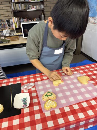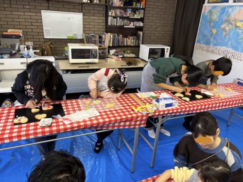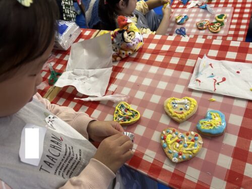 3台のオーブンで焼きていきます。その間にアイシングでデコレーションをしていきましょう。みんなとても真剣に5色の色を使って飾り付けに挑戦しました。個性豊かな作品が出来上がりましたね。そして、クッキーも焼き上がりました。