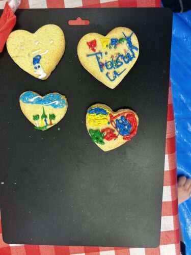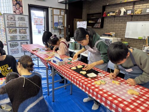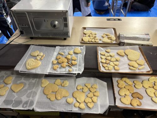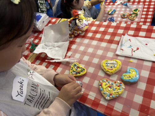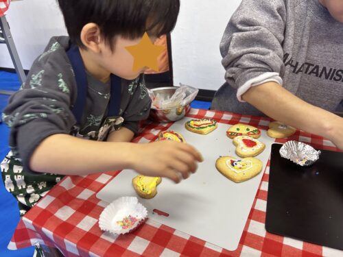3台のオーブンで焼きていきます。その間にアイシングでデコレーションをしていきましょう。みんなとても真剣に5色の色を使って飾り付けに挑戦しました。個性豊かな作品が出来上がりましたね。そして、クッキーも焼き上がりました。