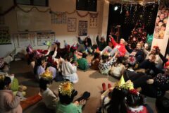 次は先生たちのお芝居の時間です。今年は真っ赤なお鼻のトナカイさんのお話。